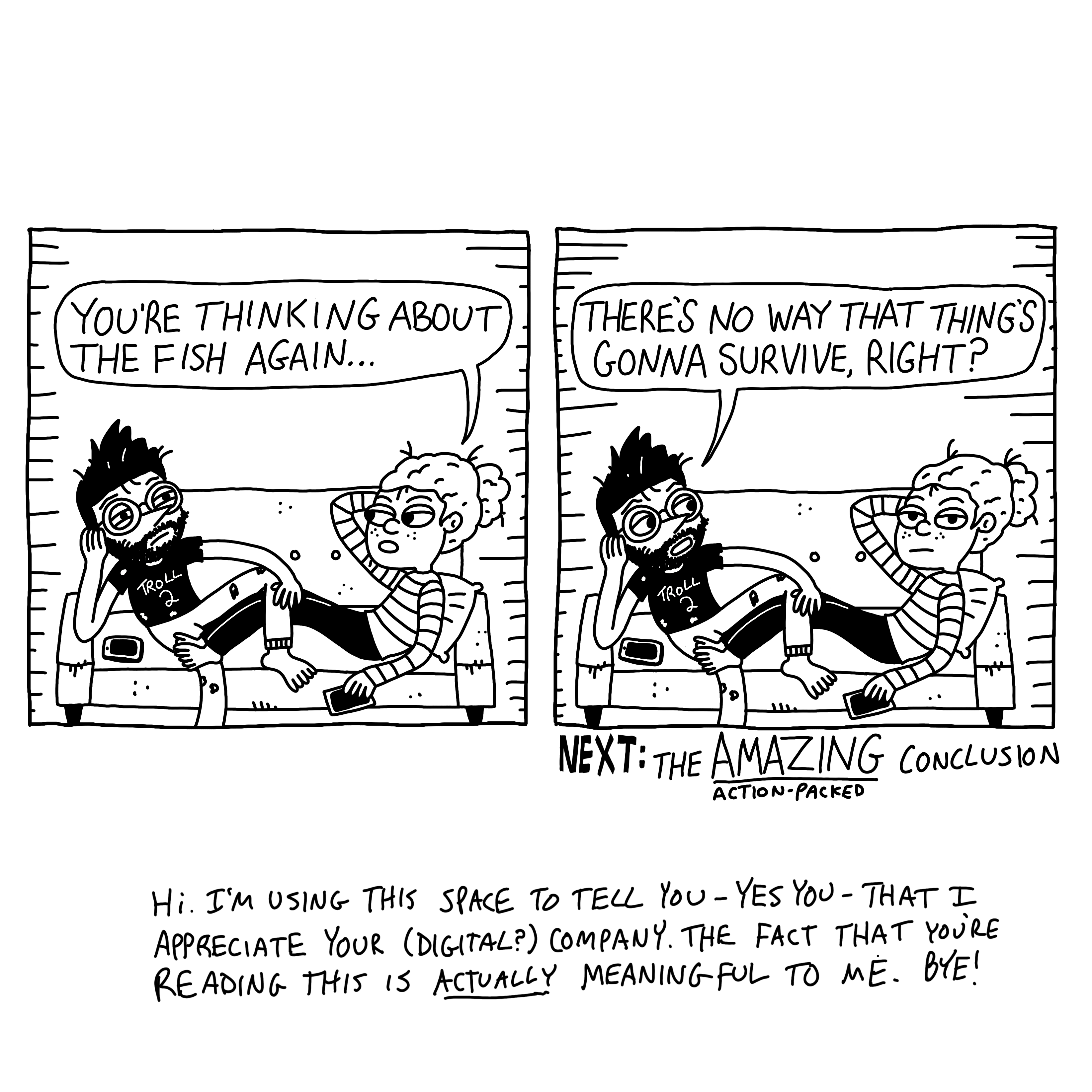 A FISH STORY: PART 3 by Michael Seymour Blake Michael Seymour BlakeMichael Seymour Blake is just some person with a nice butt in Queens, NY. February 22, 2026 · Comics Read Next: “SOME RAMBLIN’ FROM AN OLDISH MAN” by Michael Seymour BlakeMichael Seymour Blake