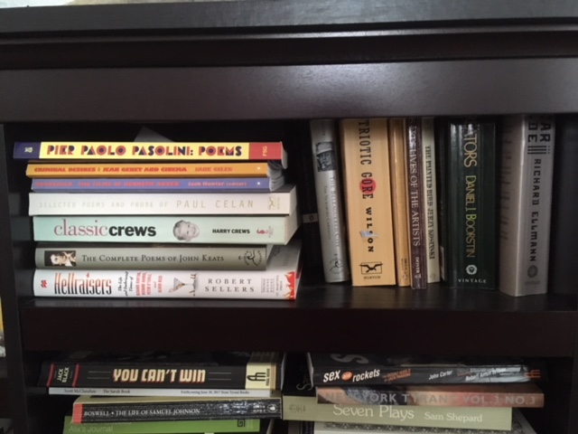 Oh gosh I have reams of stuff. I’ve known Whitcomb Riley’s “Little Orphan Annie” since I was a boy. I’ve done that so many times in readings I’m sure people are sick of it, but it makes me think of my mom. There’s some Neruda I know, a section of Under Milk Wood, John Donne always kills. I used to do a section of Virgil’s Georgics in a reading. I don’t know if it’s a trick, but I can memorize pretty easy. I’ve always liked doing it in readings because it gives you an element of control. You can move around, etc. I wanted to memorize the whole of Sarah Book for these final readings I was going to do, but I ran out of time.